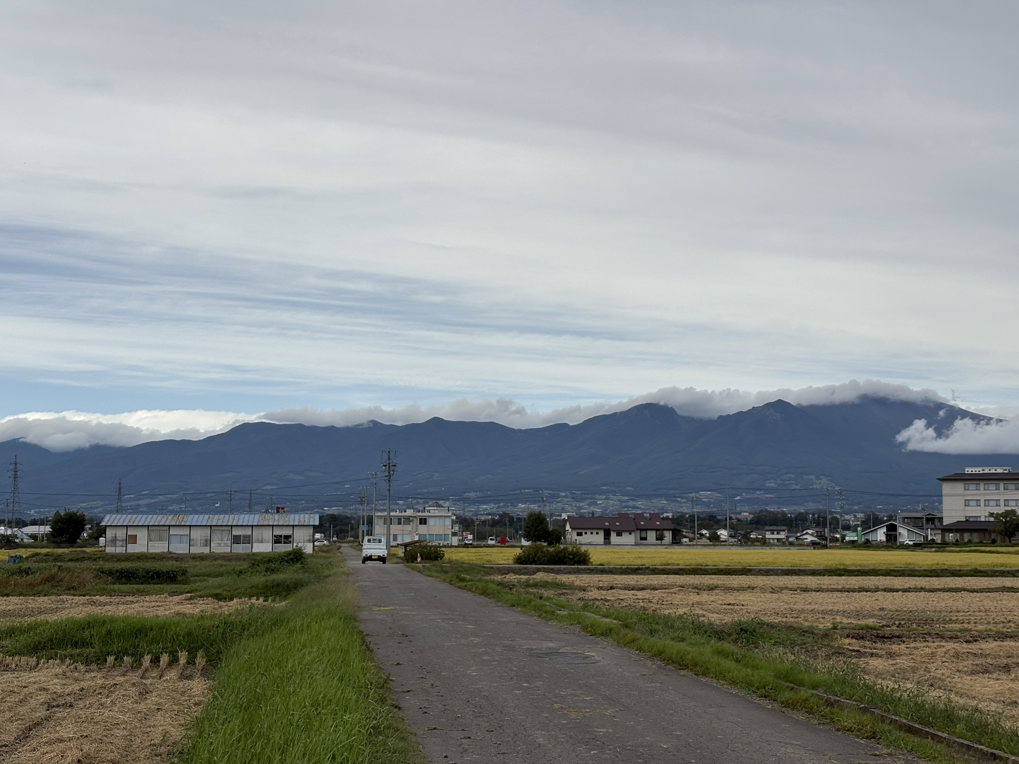 浅間山から湯の丸山、烏帽子岳の稜線を黒い雲が覆っていた。群馬県側から、湿った空気が流れきているのだ…