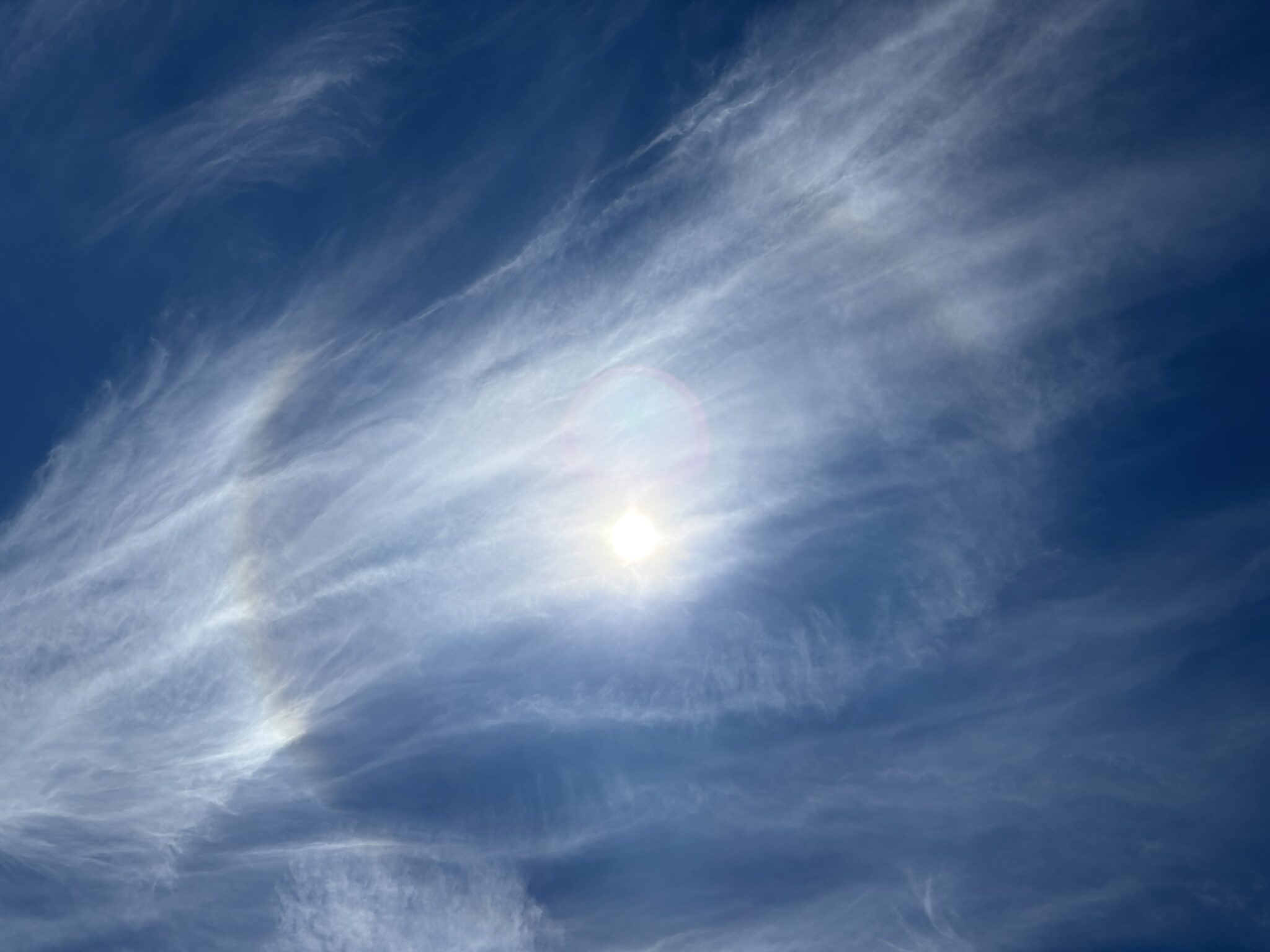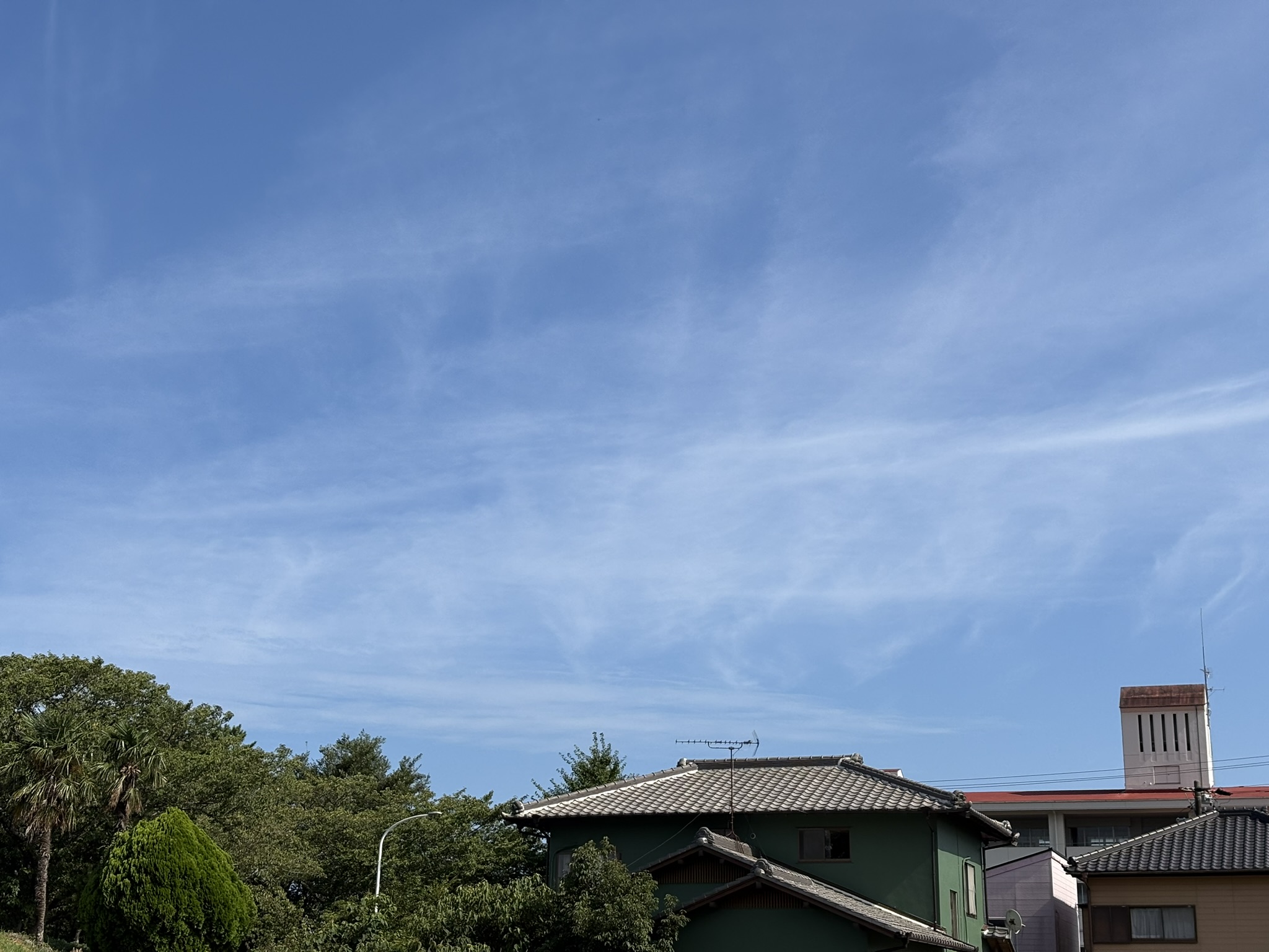 正午をまわったころ、昼食を買いにスーパーまで出かけたときに見上げた空。 上空に薄い雲が広がってきた。…