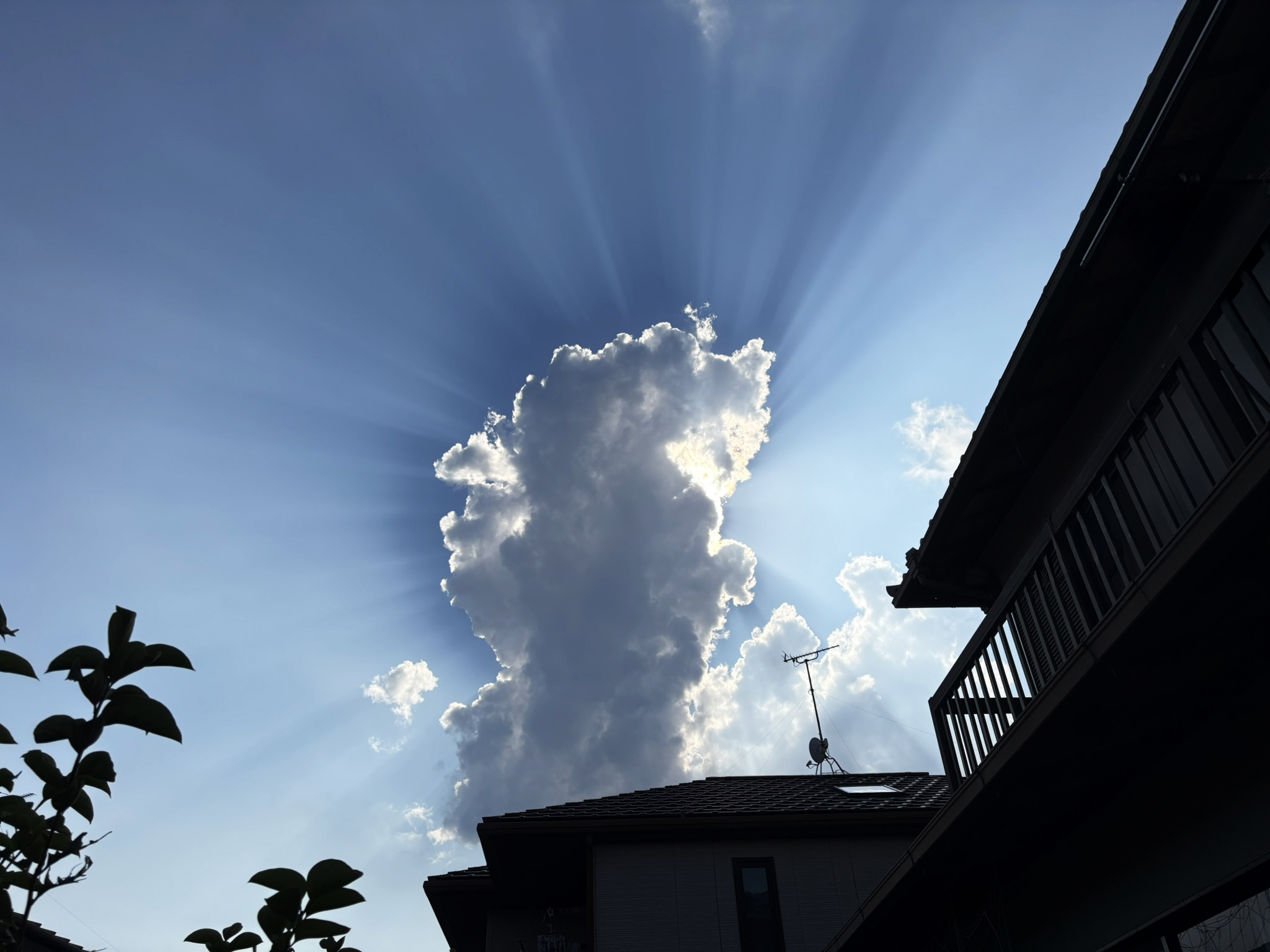 太陽光が雲にさえぎられて影の部分が集中線のように見えた。ここまで光と影のコントラストがはっきりして…